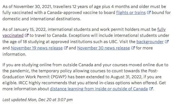 同时,校方也提醒:1月15日开始,国际学生必须完全接种疫苗,才能进入加拿大。一旦恢复线下授课,学校也强烈建议远程学习的学生返校上课。