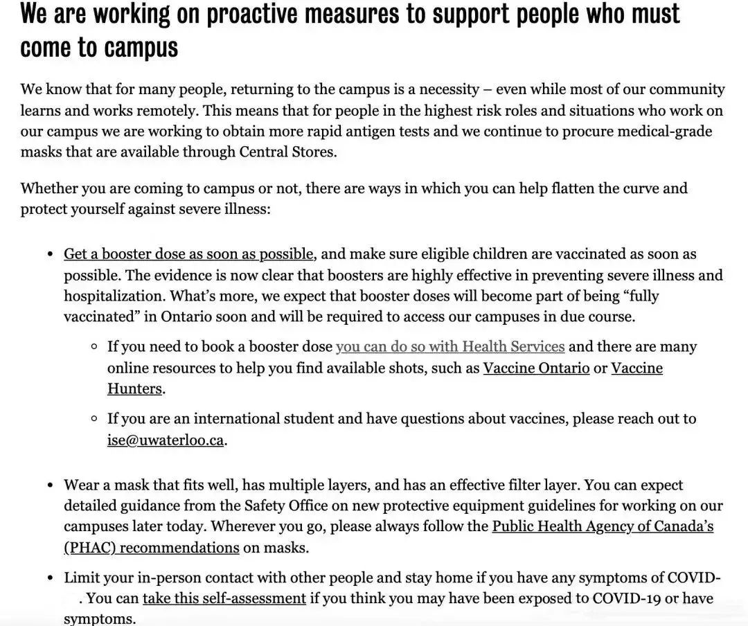 同时,校方也提醒:1月15日开始,国际学生必须完全接种疫苗,才能进入加拿大。一旦恢复线下授课,学校也强烈建议远程学习的学生返校上课。